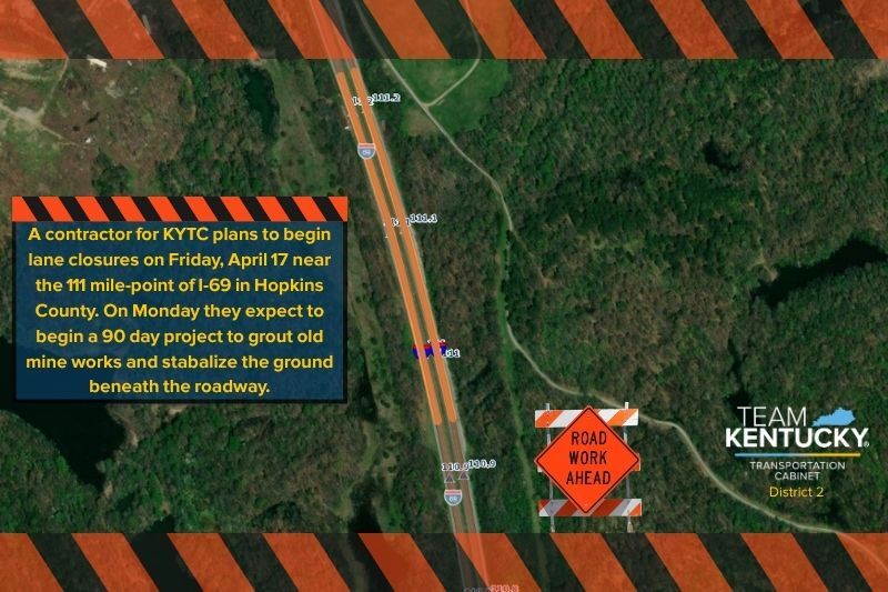 MADISONVILLE, Ky. (April 16, 2026) – The Kentucky Transportation Cabinet has awarded an emergency contract to Lexington-based Geospecialties to address mine subsidence concerns along Interstate 69 near the 111-mile marker in Hopkins County.
